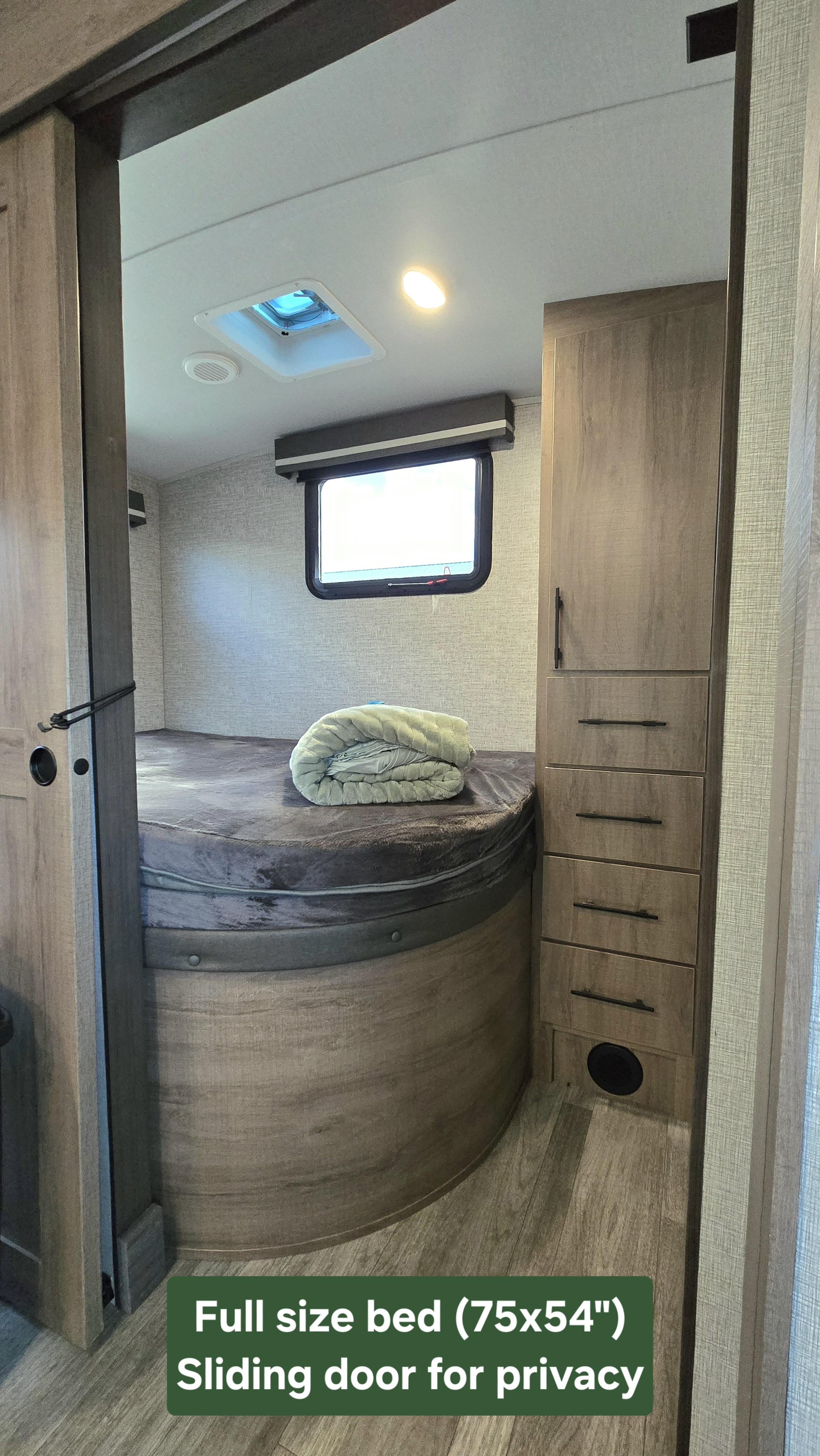 Fits in most campgrounds, easy to tow with 3/4 ton